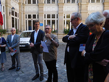 Nous avons entamé cette journée symbolique par l’inauguration d’une superbe exposition à la mairie du 4e: Les encres de la Libération: Exposition philatélie et documents de la guerre 39/45 et de la Libération; présentée dans 50 cadres soit 1200 feuilles de documents originaux, tracts de la Résistance, journaux clandestins, philatélie : les timbres surchargés de la Libération. Présentation sous vitrine de médailles commémoratives et de documents. Une exposition exceptionnelle comportant de nombreux documents très rares voire introuvables. En souvenir du 75e anniversaire, nos amis de l’ACTL (Association des Collectionneurs des Timbres de la Libération) ont réalisé un collector de 4 timbres réalisés pour cette occasion par l’artiste et notre compagnon Juan Chica-Ventura et des cartes postales reprenant les 4 visuels.