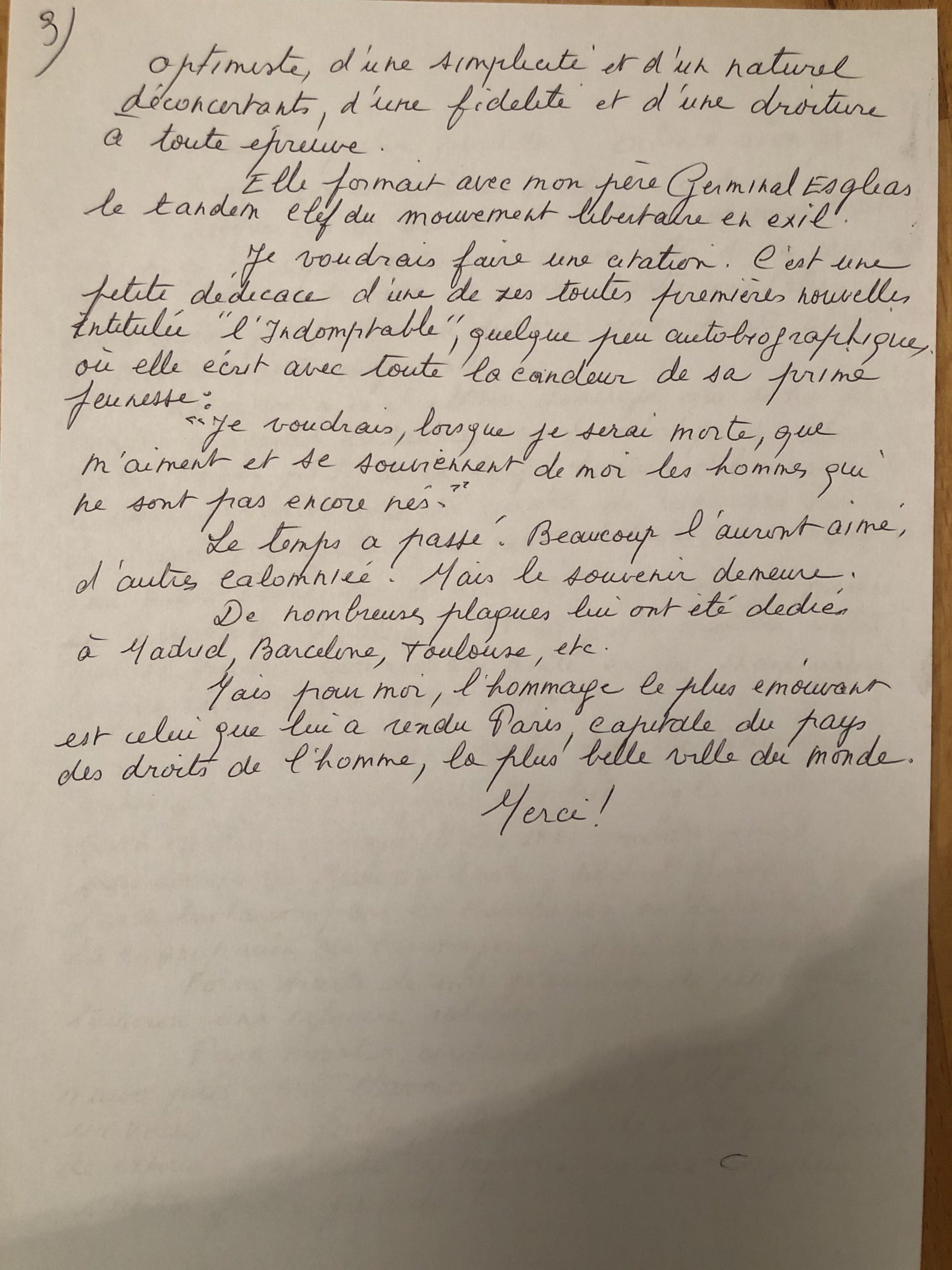 Cette plaque ira dans les archives du centre mémoriel sur l’exil libertaire espagnol qui doit se créer au 33 rue des Vignoles.