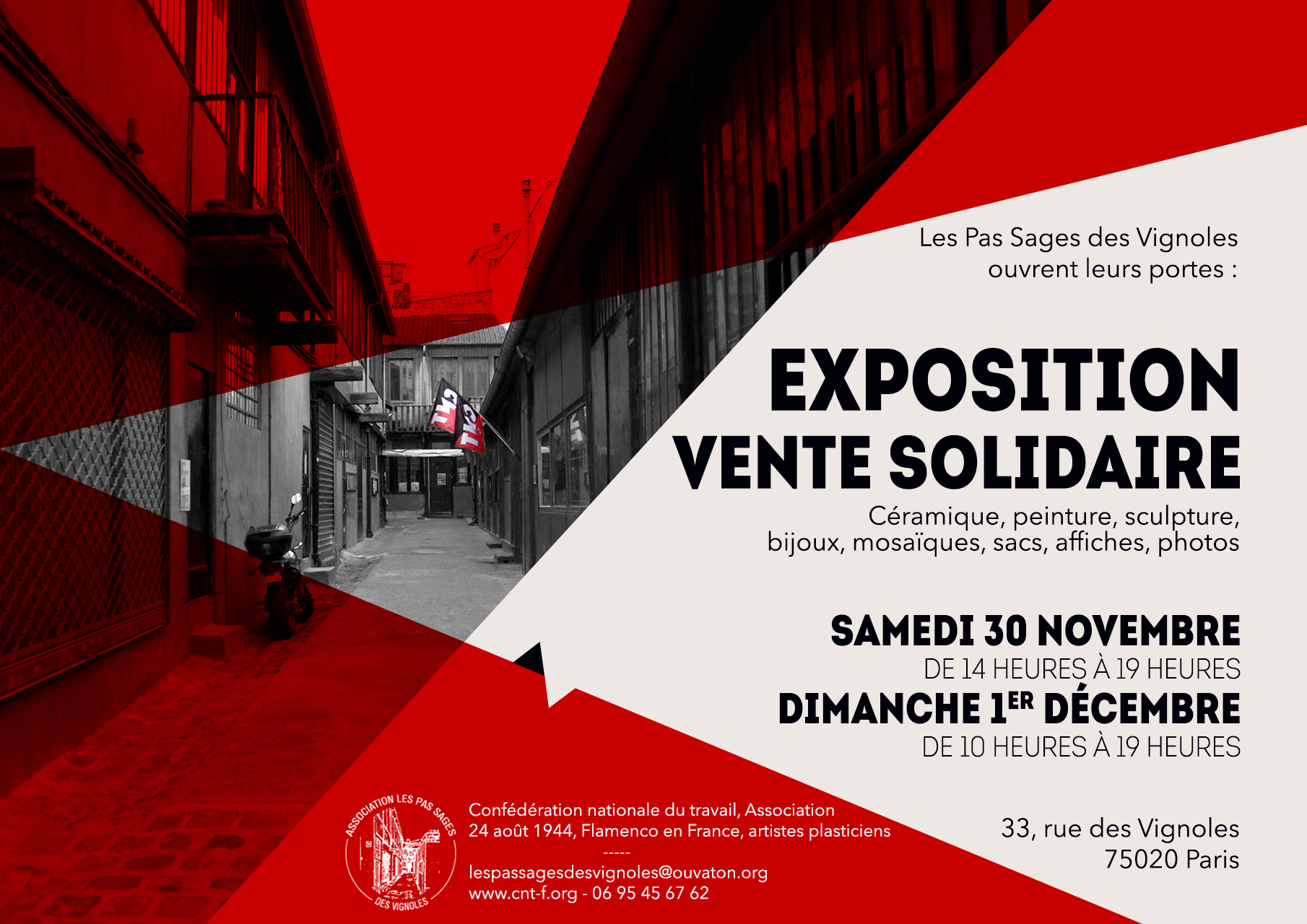 Et notez sur vos agendas: le week-end du 30 novembre et 1er décembre; l’association Les Pas Sages du 33 rue des Vignoles (Paris 20) vous convie à une exposition vente solidaire. (de nombreux objets originaux et uniques, des livres, des bijoux……voir l’affiche ) métro Buzenval (ligne 9) ou Avron (ligne 2)