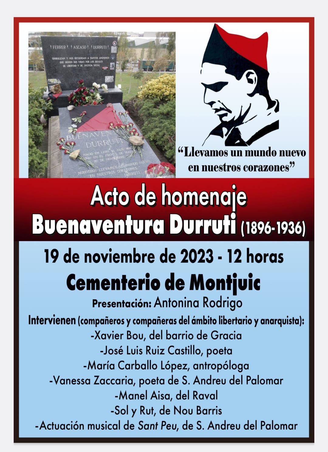 BARCELONE: le 19 novembre hommage à B. Durruti et diverses publications
