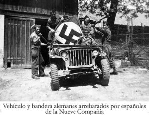 Lorsque le général Leclerc forma sa fameuse 2e DB, en 1943, les Espagnols représentaient déjà une force importante au sein de son armée. Tous, ou presque, furent alors regroupés en un bataillon composé de quatre compagnies dont chacune abritait plus d’un tiers d’Espagnols, à l’exception de la neuvième, espagnole par excellence, où même la langue officielle et le commandement étaient espagnols. Dans ce bataillon d’infanterie craint et respecté, la Nueve avait pour mission de se tenir à l’avant-garde et d’affronter l’ennemi en première ligne.