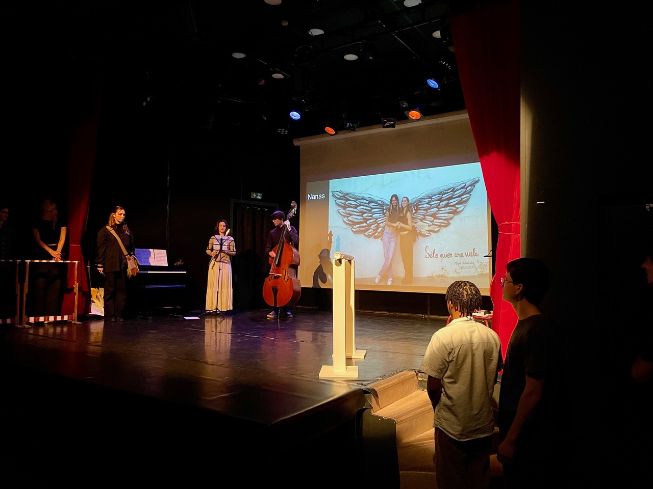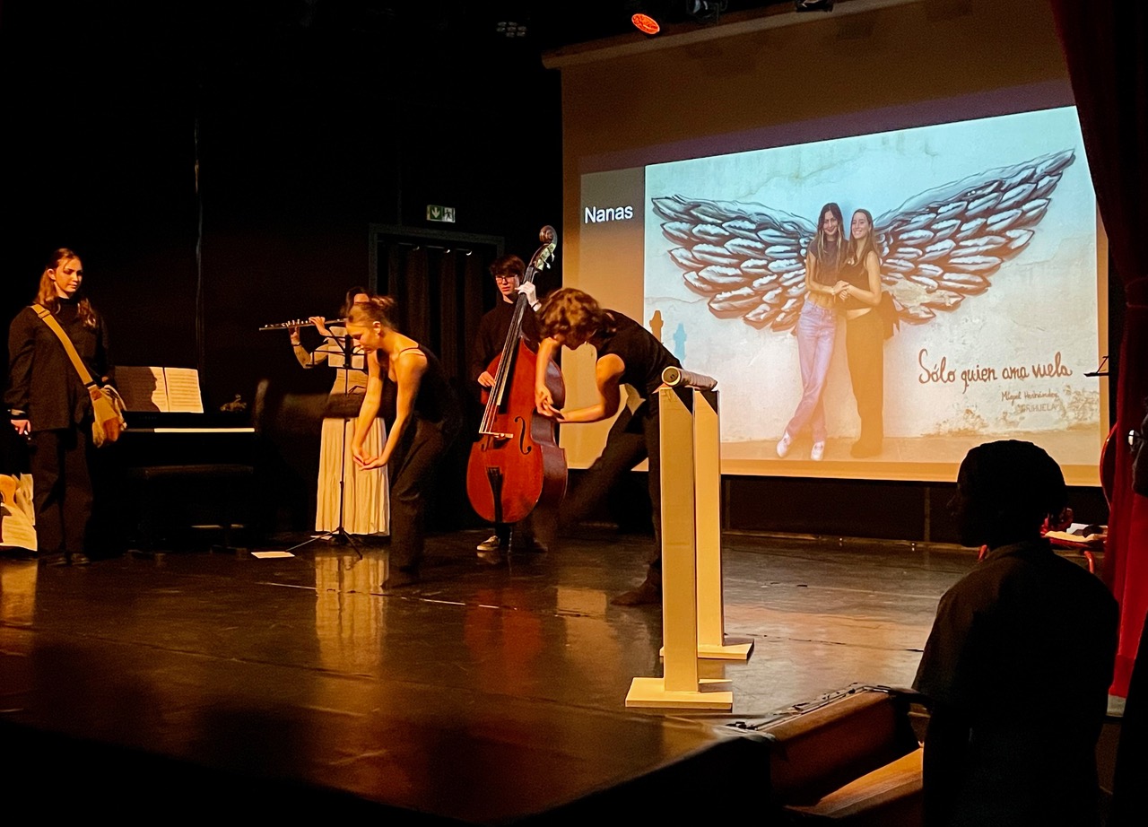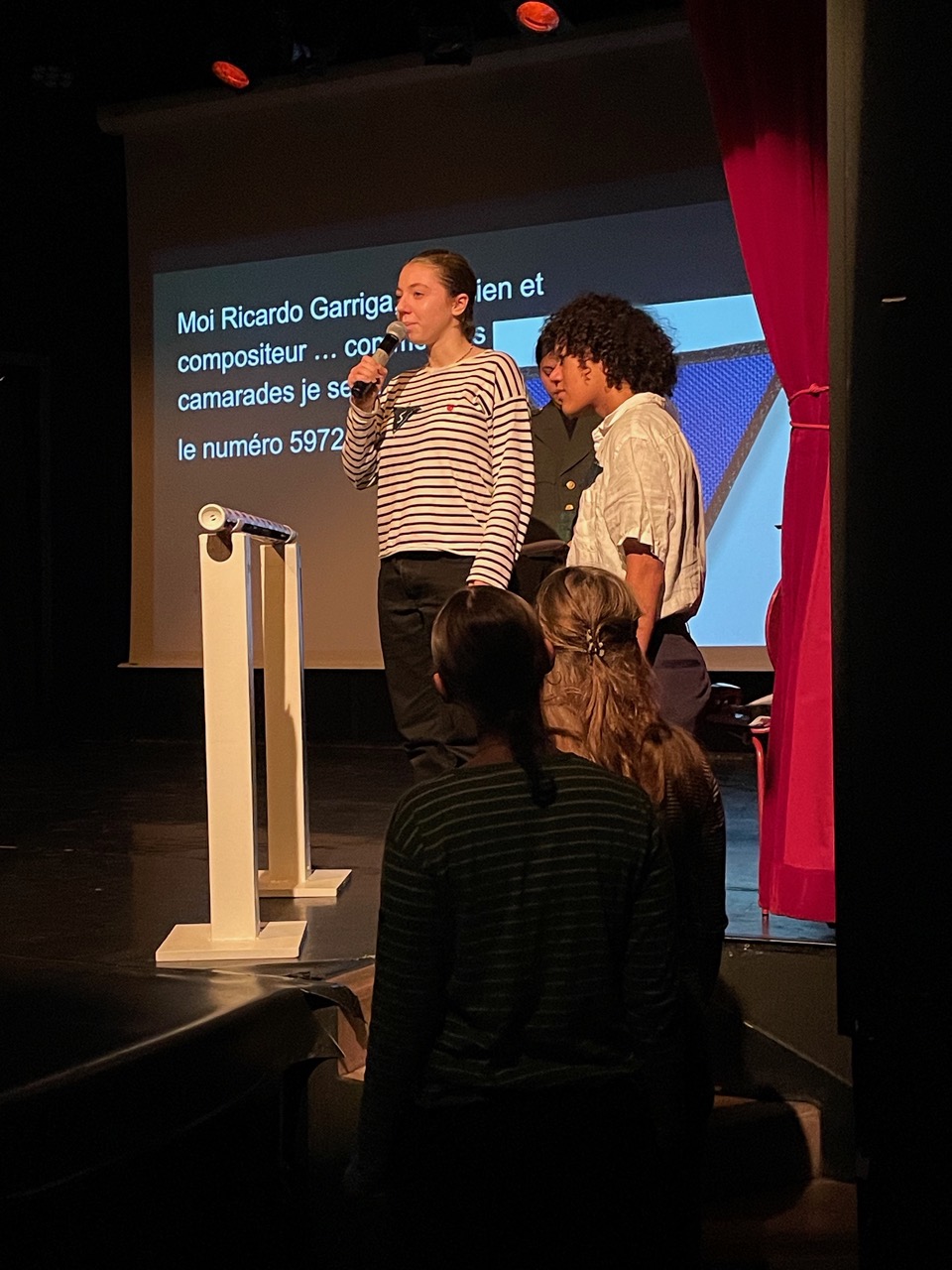 Une troupe de lycéens, du lycée Bergson et ex du lycée Brassens de Paris 19e nous ont présentés leur travaux mémoriels et surtout artistiques pour rendre un hommage vibrant à la hauteur de l’engagement de ces réfugiés dans le camp de la Liberté et de la justice sociale.