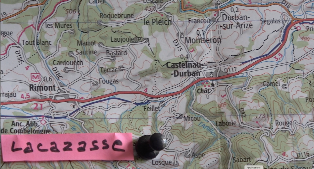 [1] Lacazace, actuellement orthographié Lacazasse, est un hameau dépendant de la commune de Castelnau-Durban qui fait partie du Couserans, partie occidentale et montagneuse du département de l’Ariège.