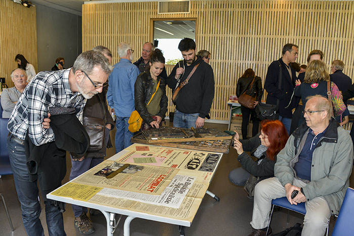 Il faut dire aussi que la salle de conférence s’était pour l’occasion transformée en imprimerie … des Gondoles, puisque les « casses » de l’imprimerie étaient exposées, ainsi qu’une variété importante des publications réalisées dans son atelier. Lisez le petit résumé sur l’imprimerie, il vous permettra de bien garder en mémoire l’importance de cette entreprise libertaire. D’ailleurs nous vous invitons à vous reporter à cette vidéo qui a été réalisée par notre ami et compagnon de route Richard Prost.