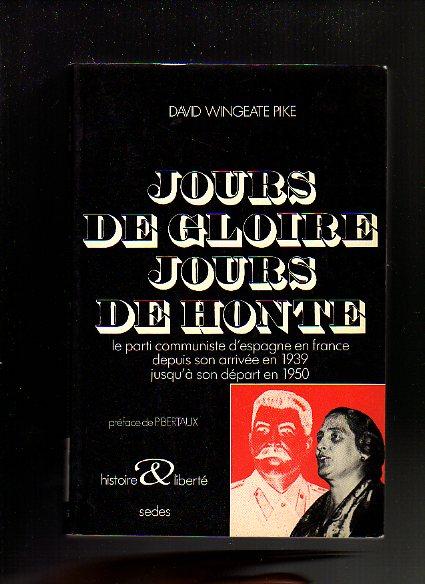 Après Les français et la guerre d’Espagne, après Vae Victis ! David Wingeate Pike examine ici deux thèmes qui sont restés jusqu’à maintenant presqu’entièrement dans l’ombre : le rôle des Espagnols dans la résistance en France et les activités du Parti communiste d’Espagne pendant la période critique de ses trente-sept ans d’exil. Jours de gloire c’est l’histoire de la contribution héroïque apportée par les Espagnols à la lutte anti-allemande, contribution minimisée, par ignorance ou à dessein, par les historiens de l’époque. Jours de honte, c’est le récit ignoble d’un parti dont la servilité face aux ordres de Staline le plaça au premier plan du conflit dans son pays d’exil, la France étant, plus que l’Allemagne ou tout autre pays, le champ de bataille principal de la Guerre froide. Les liens existants entre le PCE et le PCF au cours des douze premières années d’exil de celui-là ont exigé une attention scrupuleuse. L’importance de Jours de gloire, jours de honte repose sur le caractère unique de sa recherche : en effet, sur la plupart des thèmes exposés dans cet ouvrage, en particulier sur la période 1948-1951 en France, période où la Guerre froide fut la plus intense, aucune étude n’existe.