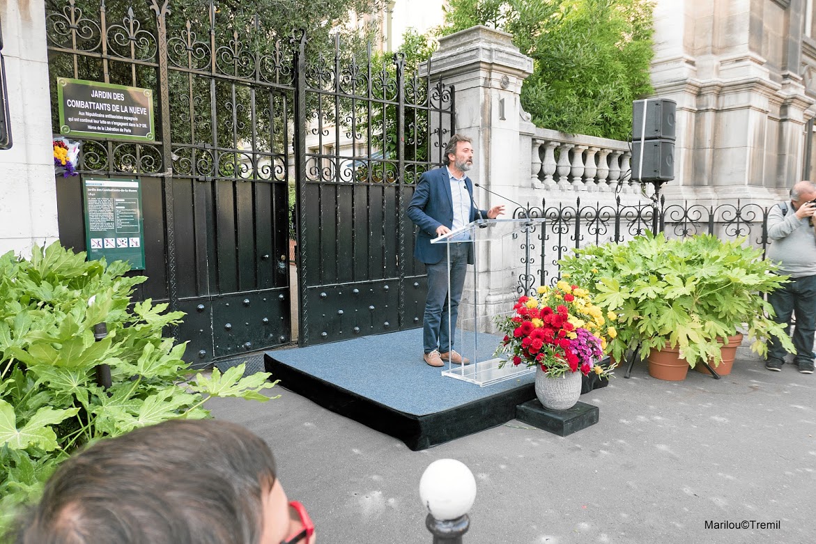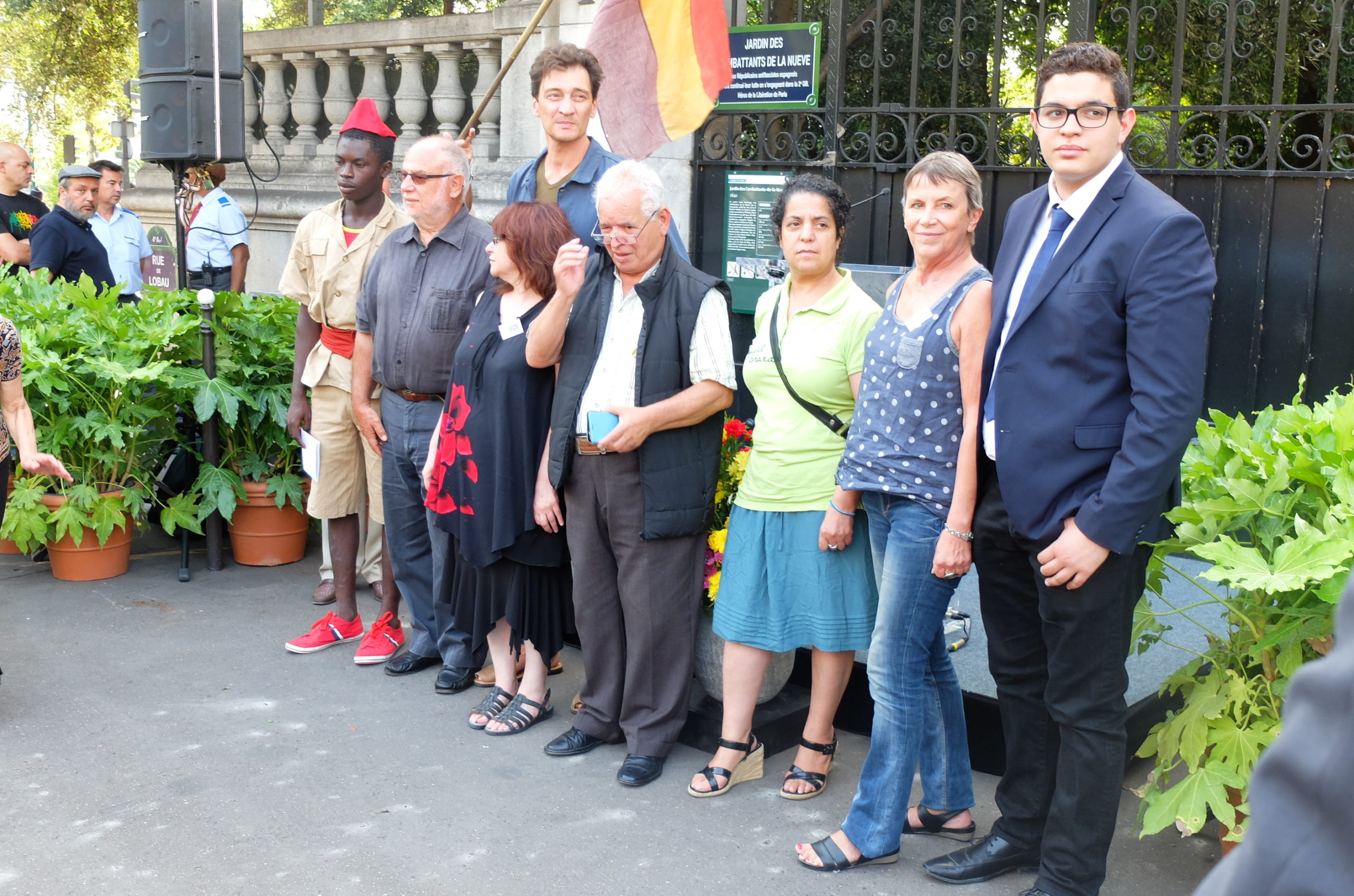 Cette année, nous voudrions dédier cet hommage à notre amie, disparue cette année sans crier gare, fille d’un combattant espagnol de la Nueve, José Cortes, blessé rue des Archives le 25 août 1944 et qui épousa l’infirmière qui lui sauva la vie. Sa fille, notre regrettée Marie José fut toujours présente à toutes les actions et interventions concernant la mémoire de son père et de ses compagnons.