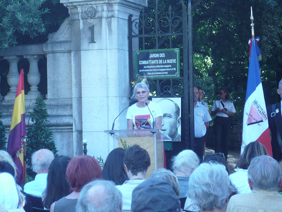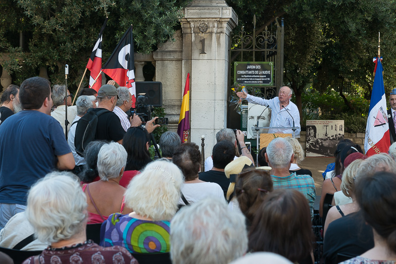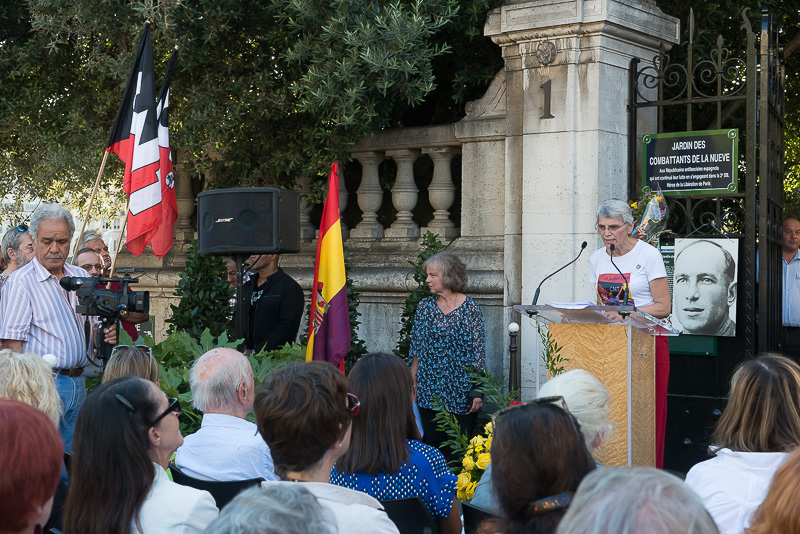 Il y a eu des prises de paroles d’officiels et de membres de l’association au départ de la marche, au square Hélène Boucher, à l’arrêt de certaines plaques, à l’arrivée de la marche, sur l’esplanade des Villes Compagnons de la Libération. Kader Arif, Secrétaire d’État aux Anciens Combattants et à la Mémoire ainsi qu’Anne Hidalgo, Maire de Paris, ont pris la parole soulignant l’engagement des Républicains espagnols, notamment des anarchistes au sein de la Nueve, dans la lutte contre le fascisme. Ils ont déploré l’abandon de La France envers ces mêmes antifascistes espagnols durant leur long combat contre le franquisme.