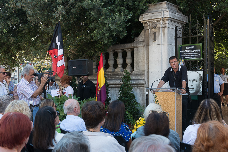 « Ils étaient, pour la plupart, espagnols, républicains, socialistes, communistes ou anarchistes, avant de devenir combattants de la Nueve et de participer à la libération de Paris, ces hommes s’étaient engagés corps et âme, au cœur de l’été 1936, contre le coup d’état militaire fasciste qui menaçait leur pays, ce grand pays qu’est l’Espagne. Je voudrais ainsi y insister : 2016 marque les 80 ans de la révolution espagnole, ce magnifique soulèvement populaire qui a uni des femmes et des hommes venus de toutes les régions d’Espagne pour délivrer leur pays d’une dictature naissante. Plus de la moitié de l’Espagne sera ainsi sauvée par ces héros qui voulaient changer le cours de l’Histoire et étaient prêts à tout risquer pour défendre la liberté et la dignité. C’est ce courage et cette détermination exemplaires que décrit avec tant de force Georges Orwell dans ses Réflexions sur la Guerre d’Espagne : « Mais ce que j’ai vu sur ton visage / Aucun pouvoir ne saurait t’en déposséder / Aucune bombe jamais éclatée / Ne peut briser l’esprit de cristal.  »