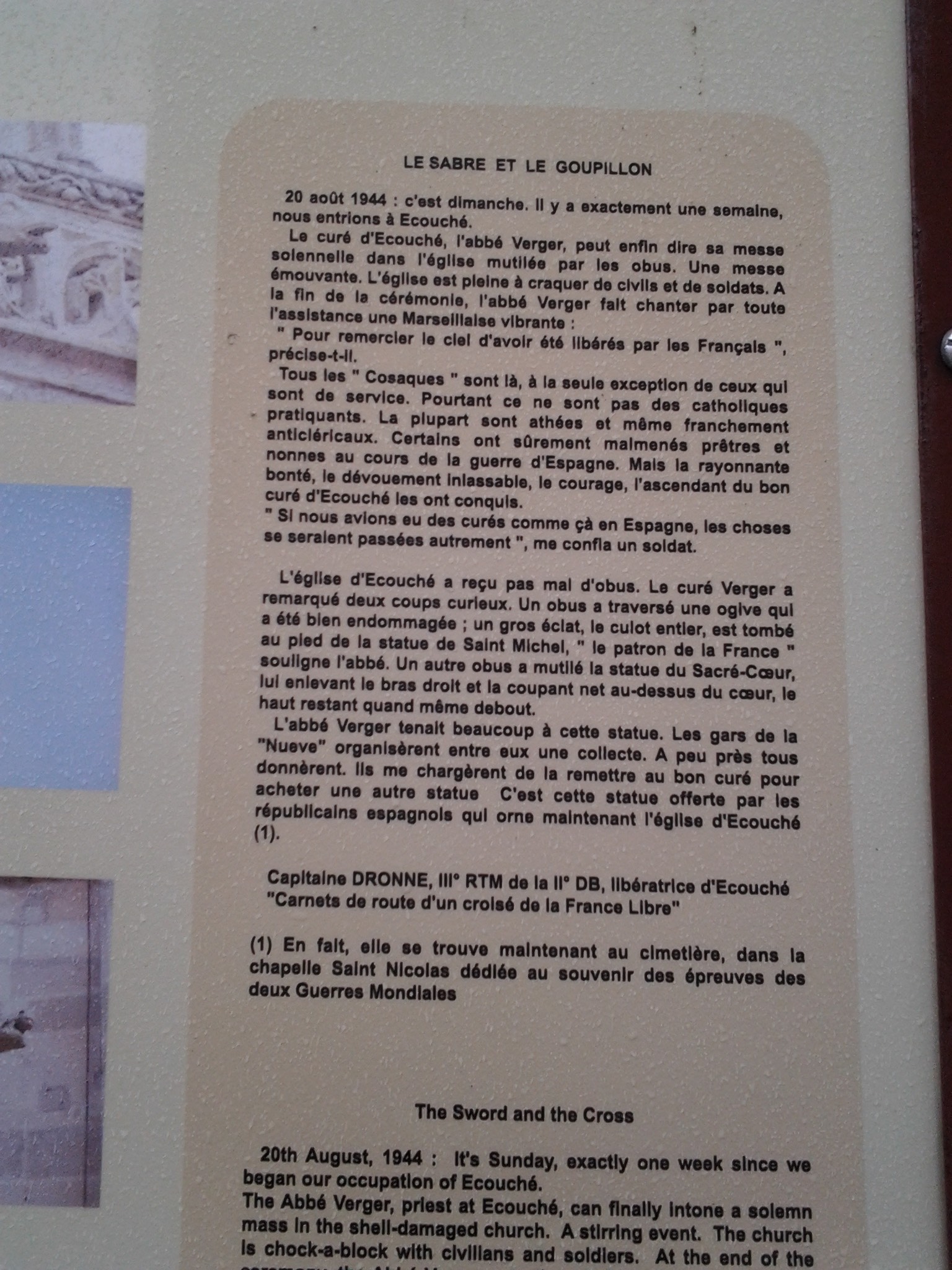Nous avons été chaleureusement accueillis, par les services de la mairie d’Écouché, notamment par Monsieur Laurent secrétaire de mairie et le président des anciens combattants, monsieur Busquet.